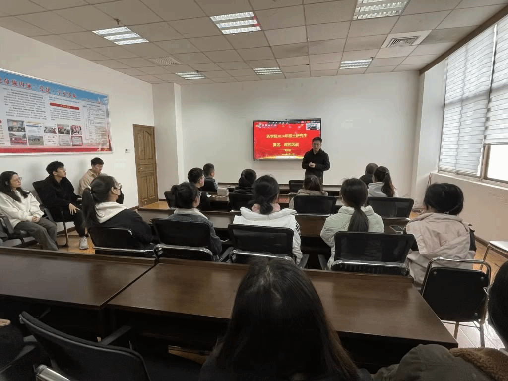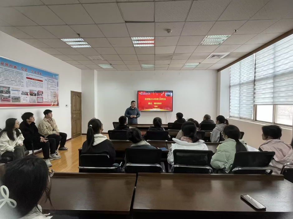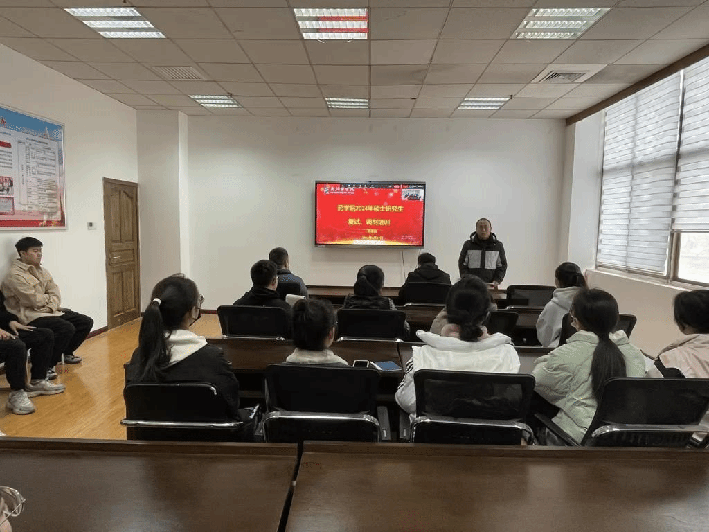 随着全国硕士研究生入学考试成绩及2024年全国硕士研究生招生考试考生进入复试的初试成绩基本要求公布,为帮助药学院考研学子明晰复试及调剂程序,3月17日,药学院举办了考研复试、调剂培训会。药学院党总支书记李俊波、院长贺艳斌、副院长段晓、毕业班辅导员和考研达线学生参加培训会。