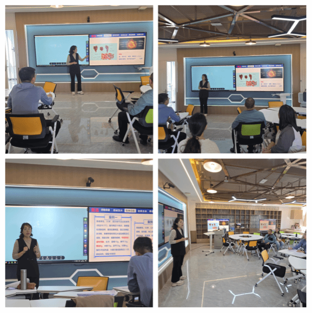 活动中,徐彩霞和孙淼两位依次进行了教学汇报展示,辛立彪老师结合国赛实战经验,围绕青教赛全流程展开深度分享。他从教学设计的逻辑构建、课堂展示的节奏把控、参赛材料的细节打磨三个维度切入,结合药学学科案例,生动讲解如何针对备赛中常见的重难点问题提供实用解决方案。在互动答疑环节,老师们踊跃提问,就教学设计优化等问题与辛老师深入交流。